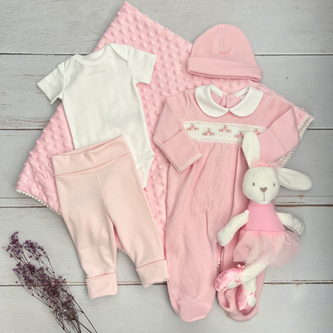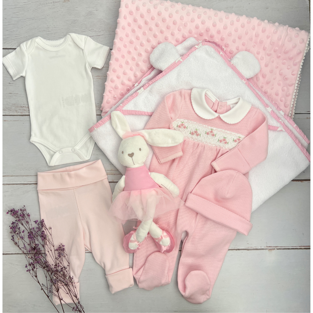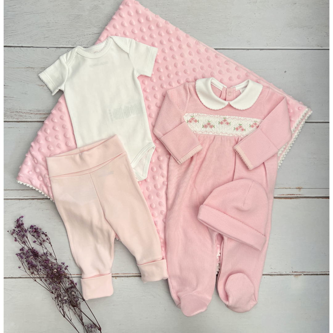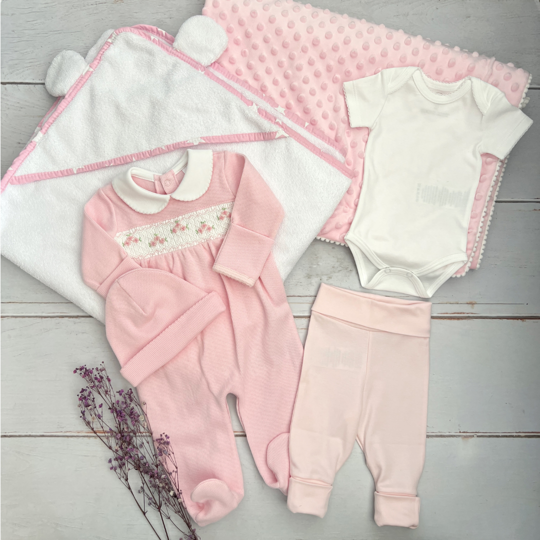 Combo Recién Nacido Enterizo Nido Abeja Rosado