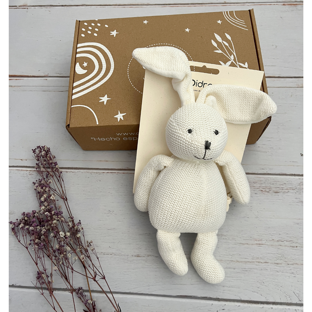 Peluche encantador diseñado para brindar confort y compañía a los más pequeños de la casa. Hecho con materiales de alta calidad, este conejito de tricot es ideal para abrazar y jugar durante horas, además de ser una excelente opción para decorar la habitación de los niños.
