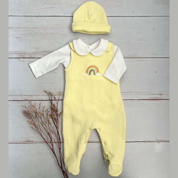 Conjunto Bebé Algodón Pima Overol y Mameluco Amarillo