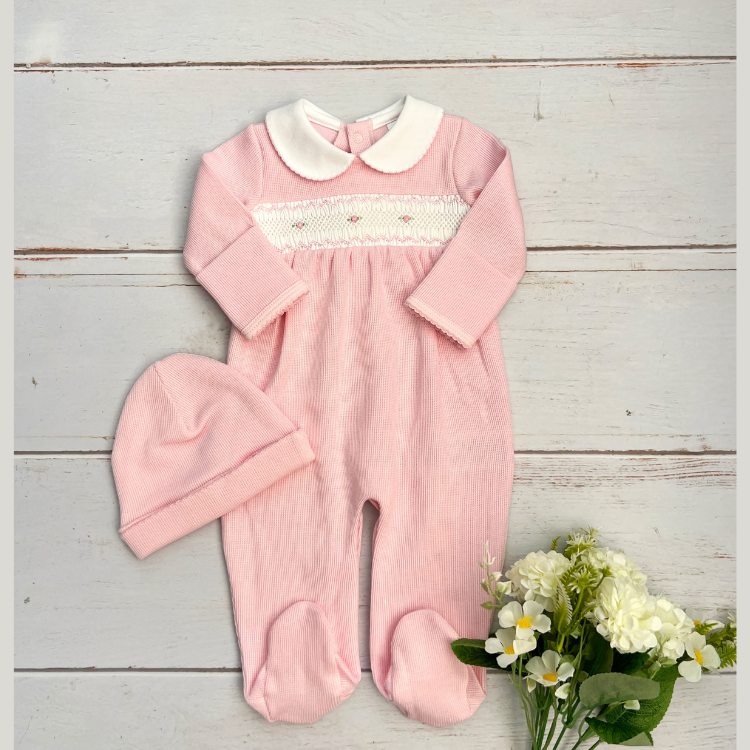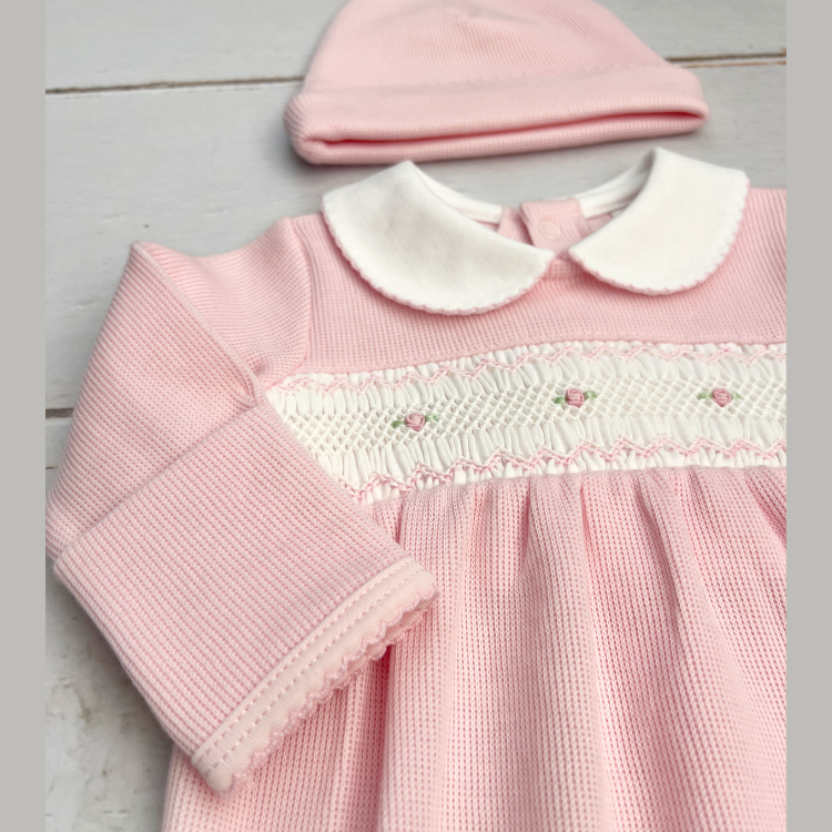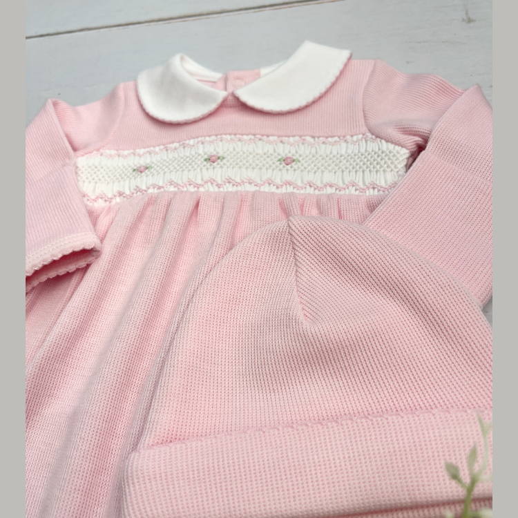 Enterizo Primer Dia Bebé Algodón Pima Nido Abeja Rosado