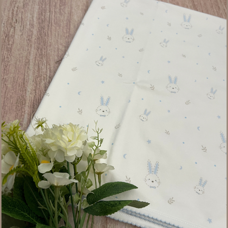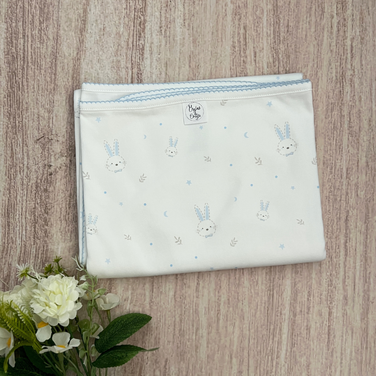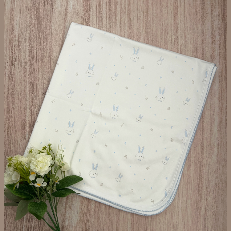 Manta Cobertor Bebé Algodón Pima Conejos Azul