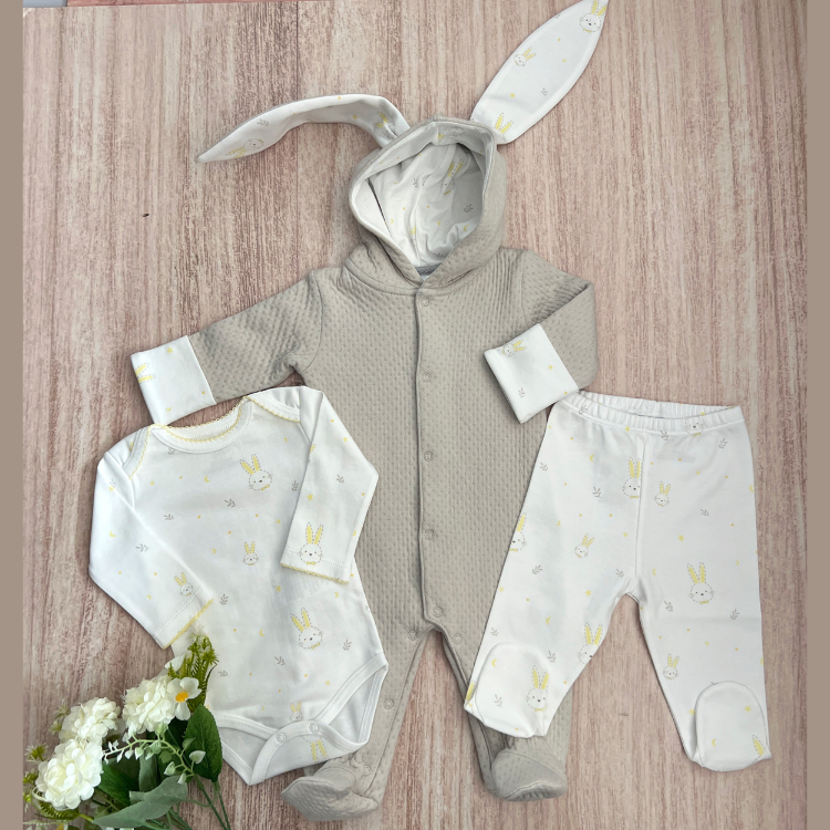 Set Bebé 3 Prendas Enterizo Orejas de Conejo Gris